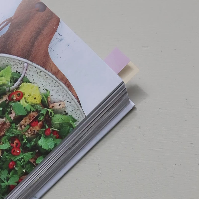 Set di segnalibri che funzionano come piccoli post-it rettangolari. Utili per indicizzare i tuoi appunti o da usare come segnalibri. Il set contiene quattro bellissimi colori pastello. La carta non è patinata e puoi scriverci senza problemi.